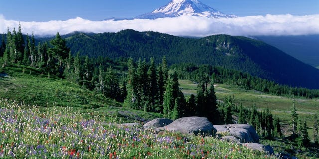Le parc national du Mont Rainier, situé à environ deux heures et demie de route au sud-est de Seattle, est le théâtre du Mont Rainier, un majestueux volcan toujours actif (mais surveillé de très près) culminant à 4392 mètres d’altitude. Il est célèbre pour ses randonnées, ses cascades, ses prairies fleuries et sa faune diversifiée. Le secteur de Paradise, situé à 1646 mètres d’altitude sur le versant sud de la montagne, est la destination la plus populaire du parc, car elle offre une vue saisissante sur le sommet du mont Rainier.